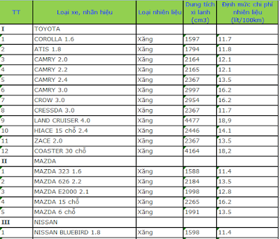 Hình ảnh: Thống kê số nhiên liệu tiêu thụ của từng loại xe ô tô