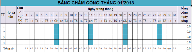 Các bạn download File excel mẫu bảng chấm công đơn giản mới nhất tại đây nha.