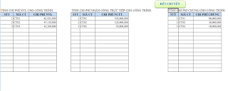 – Tính chi phí nvl cho công trình, chi phí nhân công trực tiếp cho công trình, chi phí chung cho công trình.