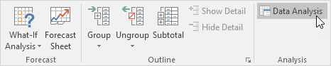 Chú ý: nếu không thấy hiển thị nút Data Analysis , xem tại đây để kích hoạt